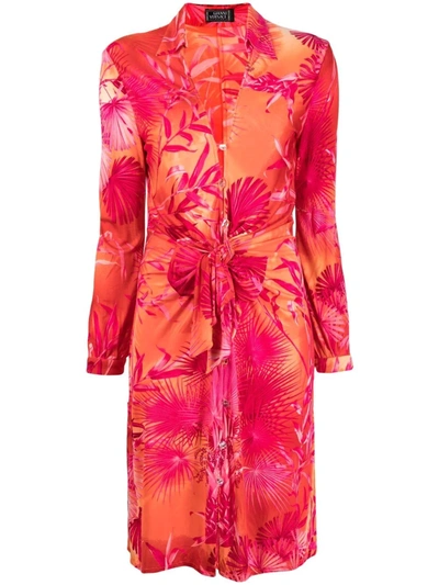Pre-owned 2000s Jungle Print Silk Dress In Orange