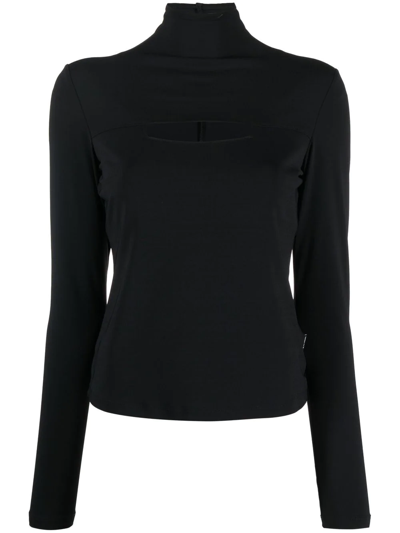 Pre-owned 2000s Cut-out Long-sleeve Top In Black
