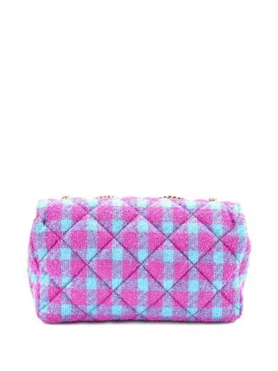 Pre-owned Medusa Icon Chain Flap Bag Quilted Tweed Mini Shoulder Bag In Blue