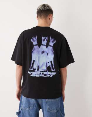 Rose Flame Back Print Oversized T-shirt In Black