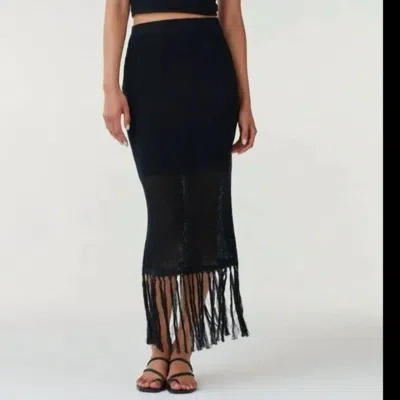 Getaway Collection Knit Fringe Maxi Skirt In Black