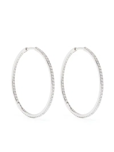 14kt White Gold Diamond Hoop Earrings In Silver