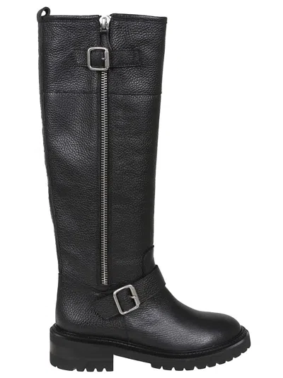Black Knee-high Boots With Cut-out On The Side And Logo Plaque In Leather Woman