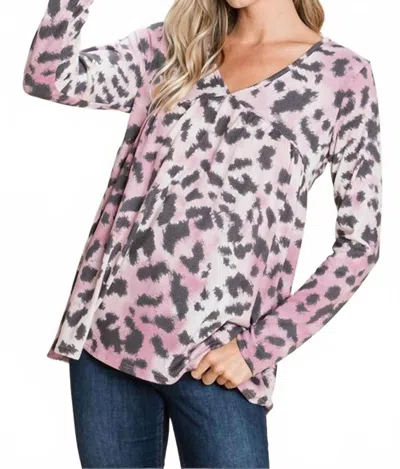 Magenta Black Hexa Pattern Animal Print Top In Pink