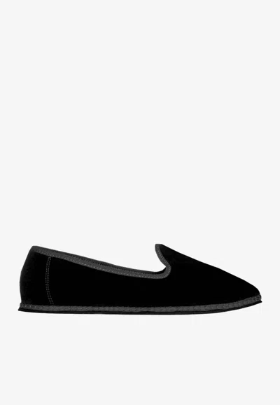 Velvet Round Toe Slippers With Contrast Sole In Blue