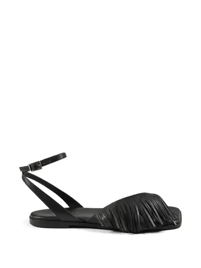 Fringed Flat Sandals In Black