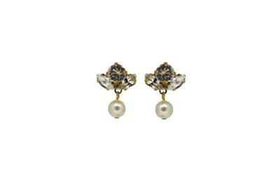 Women's Gold / Blue Blue Danube Large Hive Drop Earrings In Multi