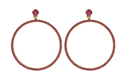 Women's Pink / Purple The Jumbo Pink Hoop Earrings In Gold - Clip In Multi
