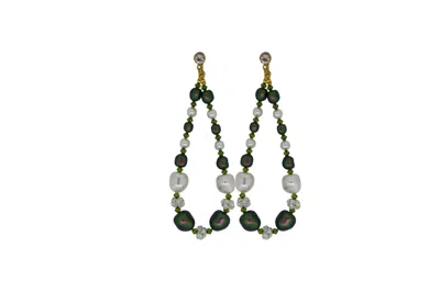 Women's Neutrals / Gold / Green Green Baroque Pearl & Chaton Earrings