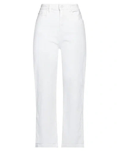 Woman Jeans White Size L Cotton, Elastane