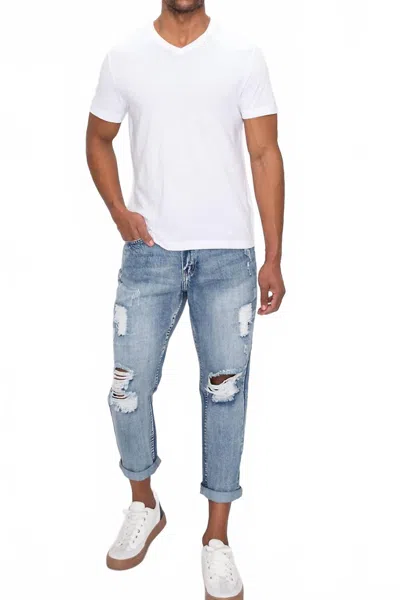 Long Sleeve Button Up Distressed Denim Jean Jacket In Sand In Neutral