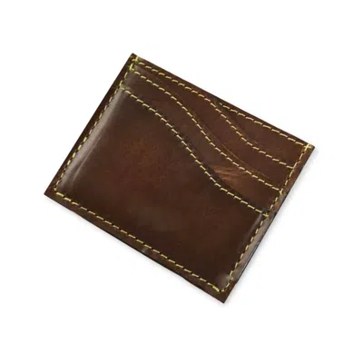 Men's Brown Tan Leather Wave Card Holder With Yellow Contrast Stitch