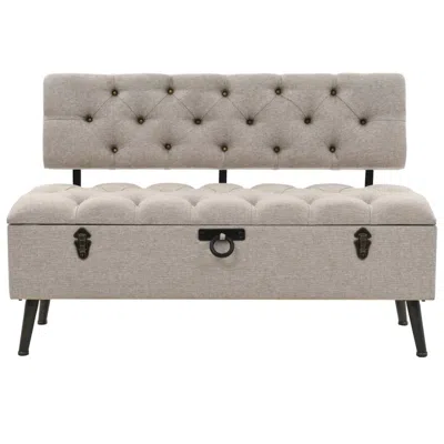 Storage Bench Cream Engineered Wood 43.3 Inches Storage Bench In Neutral