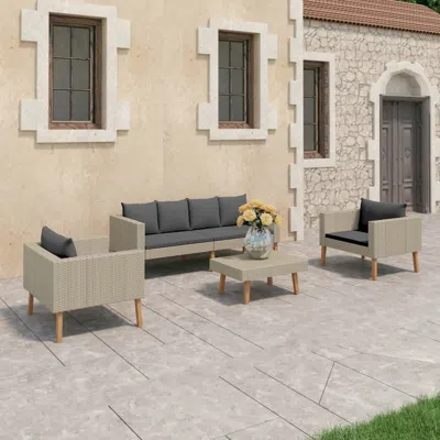 4 Piece Garden Lounge Set With Cushions Poly Rattan Beige, 3059328 In Gray