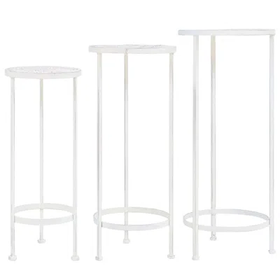 Plant Stand Set 3 Pieces Vintage Style Metal Antique White, 245937 In Neutral
