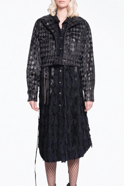 Checkmate Textured Vegan Leather Cropped Jacket In Black