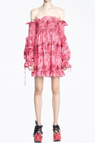 Venus Off-the-shoulder Smocked Charmeuse Mini Dress In Pink