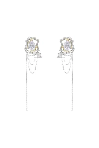 Glass Tears Gemstone Chain Drop Earrings In Silver/gold In Metallic