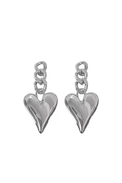 Metal Love Cuban Chain Heart Drop Earrings In Silver In Gold