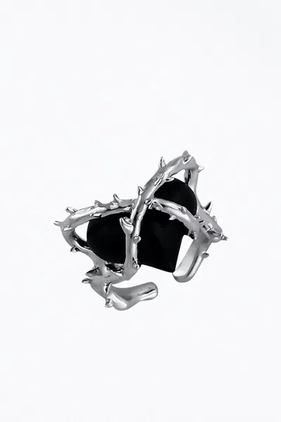 Tainted Love Stone Heart Open Ring In Silver/black