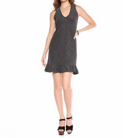 V Neck Sleeveless Ruffle Hem Dress In Black In Grey