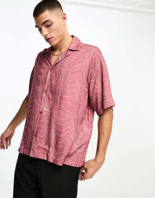 Contour Print Shirt In Red