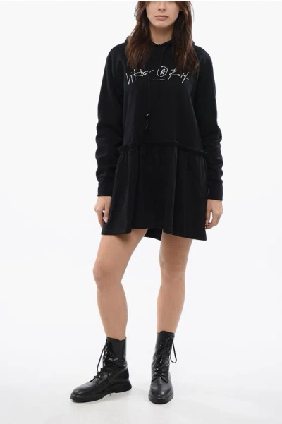 Checkered Motif Mini Dress With Faux-fur Trim In Black