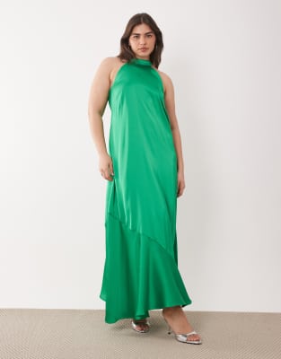 Sleek Satin Halter Maxi Dress In Green