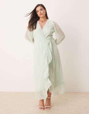 Textured Wrap Maxi Dress With Frill Detail In Green