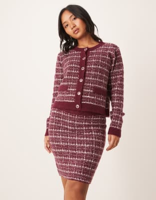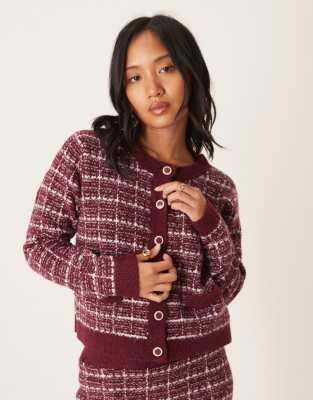 Boucle Check Cardigan In Red