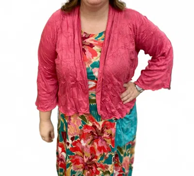 Crinkle Boatneck 3/4 Sleeve Top In Coral In Pink
