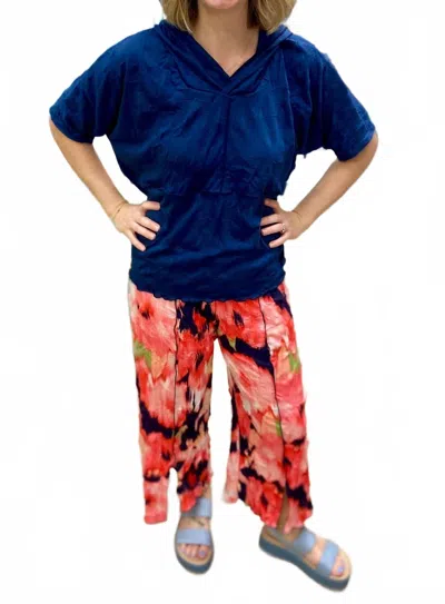 Crinkle Straight Leg Pant In Coral Print In Multi