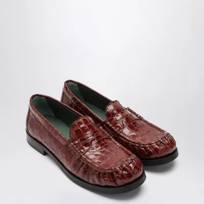 Vinnys Brown Ogee Moccasins With Crocodile Print In Burgundy