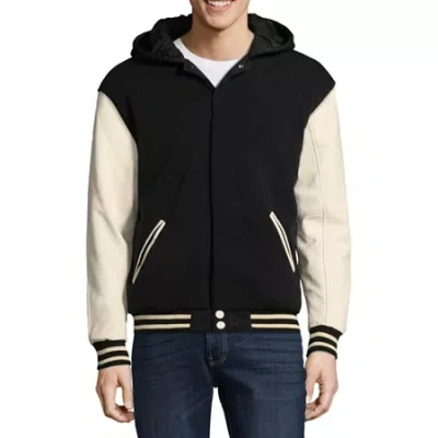 Mens Faux Leather Reversible Lightweight Varsity Jacket In Black