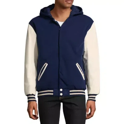 Mens Faux Leather Reversible Lightweight Varsity Jacket In Blue