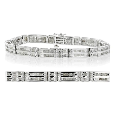 1.50 Cttw Men's Diamond Bracelet .925 Sterling Silver With Rhodium 7 Inch 13 Grams