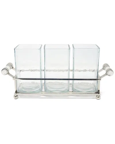 Set Of 3 Canisters On Rectangle Tray With Ball Knobs In Gold