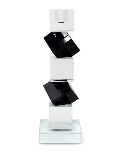 Crystal Candlestick Angular Shape With Linear Design In Transparent