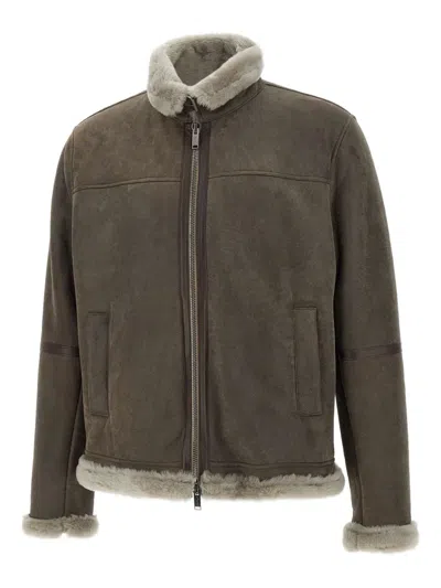 Modigliani Camoscio Buttoned-pockets Leather Jacket In Gray