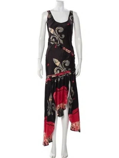 Pre-owned Floral Print Long Dress In Black