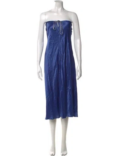 Pre-owned Strapless Knee-length Dress In Blue