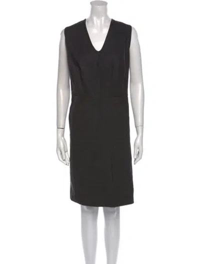 Pre-owned V-neck Knee-length Dress In Black