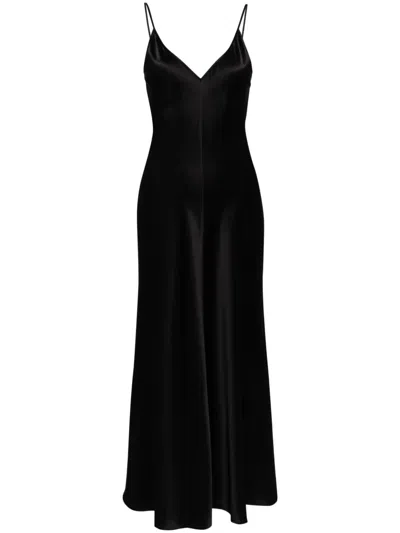 V-neck Slip Silk Dress In Black
