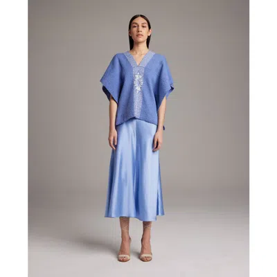 Wide Diagonal Alpaca Blanket In Opal/navy