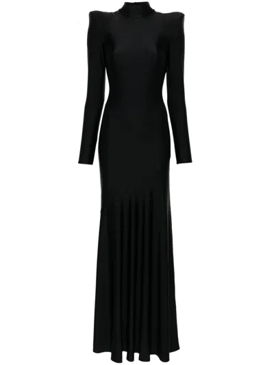 Alette Draped Fluted Maxi Dress In Black
