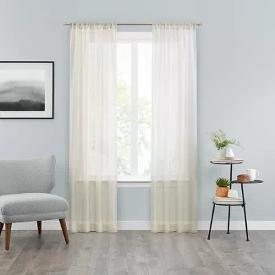 Textured Voile Rod Pocket Sheer Set Of 2 Curtain Panel In Sand