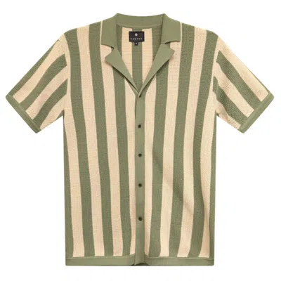 Men's Green / White Retro Striped Knit Camp Shirt