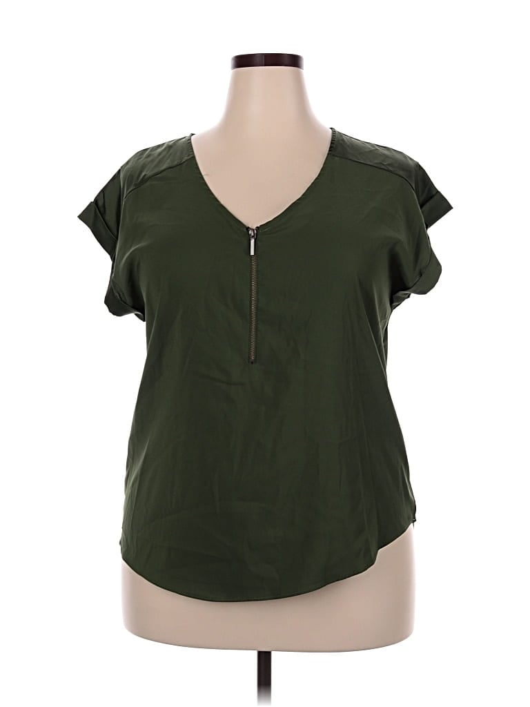 Pre-owned Short Sleeve Top Green V Neck Tops