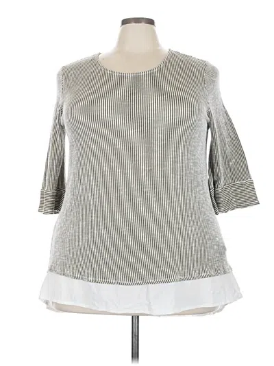 Pre-owned 3/4 Sleeve Top Gray Crew Neck Tops