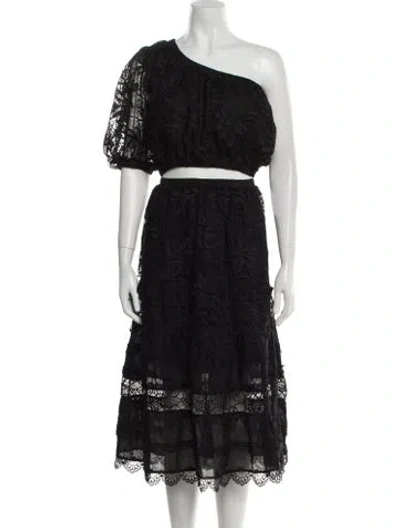 Pre-owned Lace Pattern Midi Length Dress In Black